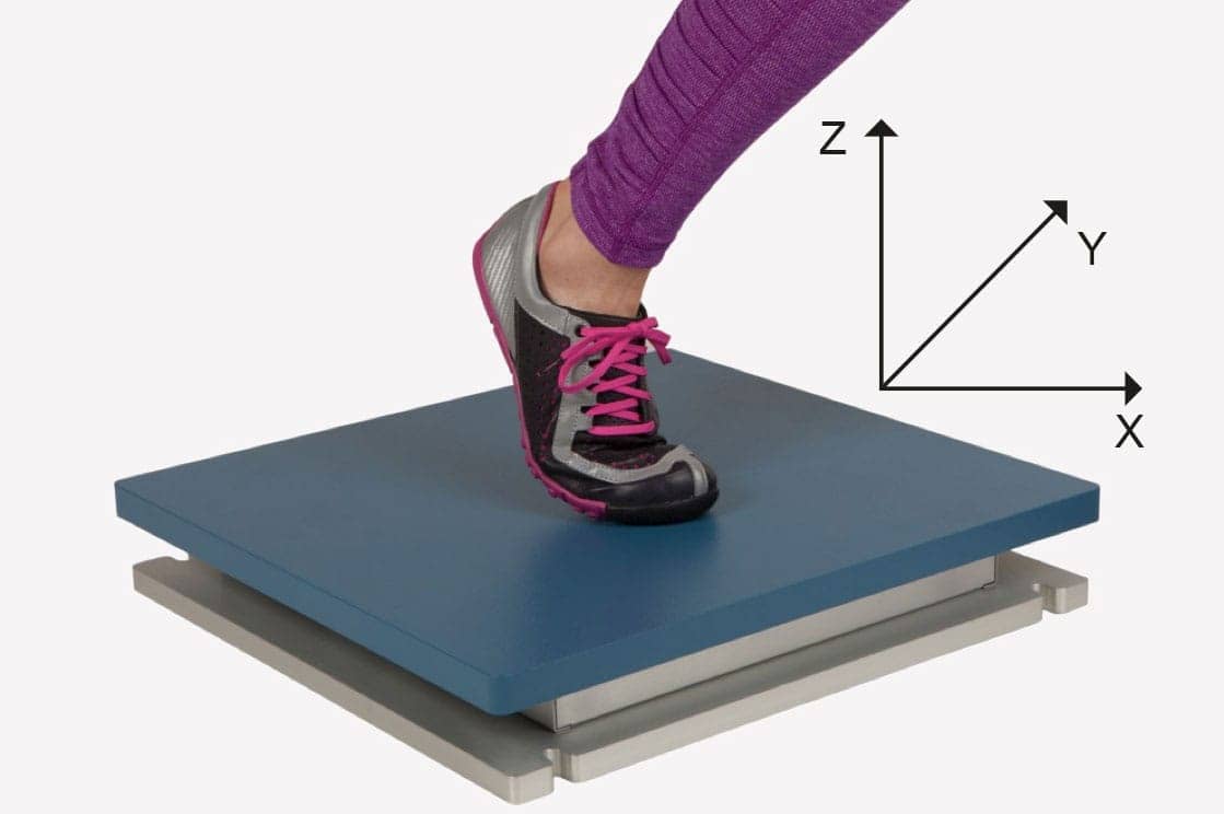A força de reação do solo é mensurada pelo uso da plataforma de força, equipamento cuja composição tem células de carga (com quantidade variável de acordo com os eixos de aquisição de força) e que funciona como um transdutor de força, convertendo-a em sinal elétrico.