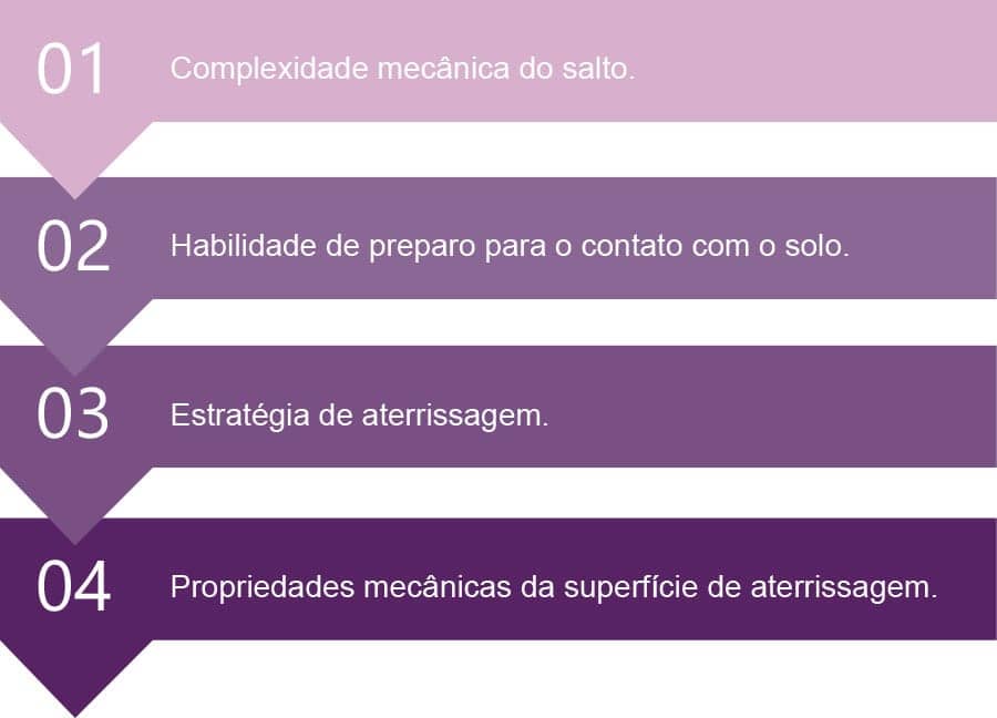 Além disso, o aumento do componente horizontal e/ou vertical da velocidade do centro de massa do saltador no momento da aterrissagem pode aumentar o pico da força de reação do solo, reduzindo o nível de controle postural.
