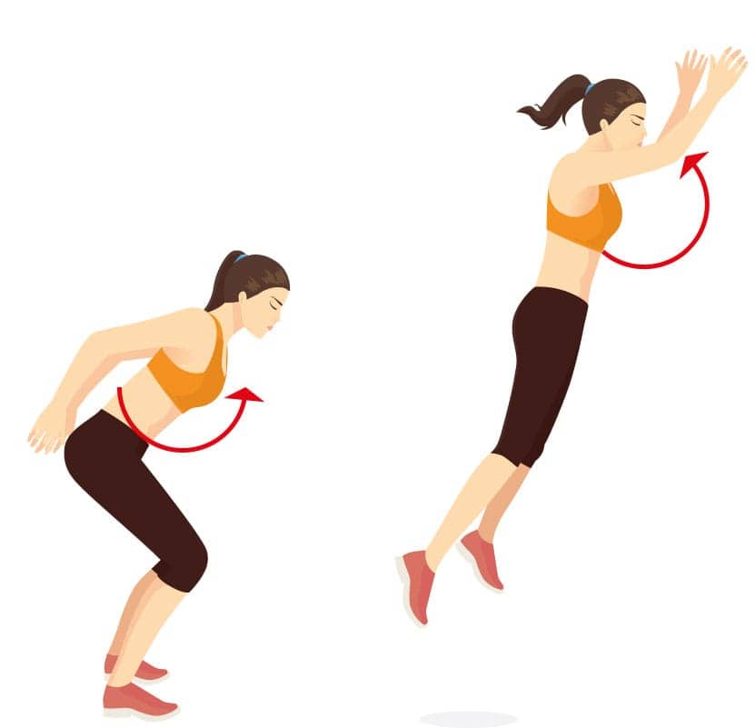 A melhora no salto é explicada pela teoria da transferência de energia, em que os músculos das articulações do ombro e cotovelo passam a energia para o resto do corpo (principalmente membro inferior) antes da decolagem, aumentando a velocidade e o deslocamento do centro de massa nas direções horizontal e vertical.