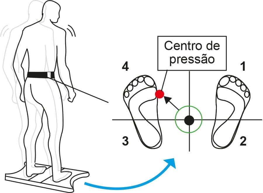 Outra variável cinética relacionada à força de reação do solo é o centro de pressão, definido como a resultante do campo de pressão que o corpo exerce sobre a superfície de apoio.