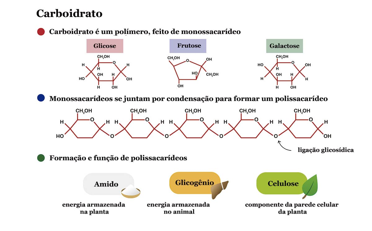 Além de mono e dissacarídeos, os carboidratos também podem ser classificados como oligossacarídeos, que possuem de duas a dez cadeias de monossacarídeos unidas por cadeias laterais ou ramificadas.
