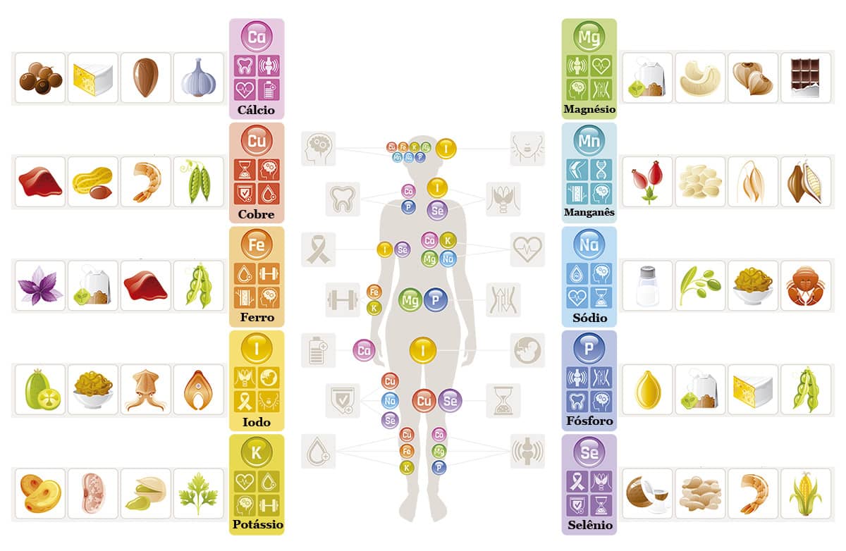 A seguir, descrevemos a atuação dos minerais mais relevantes para o organismo.
