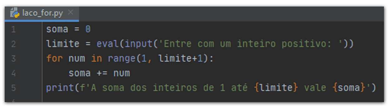 Reconheceu a estrutura de repetição com variável de controle em Python