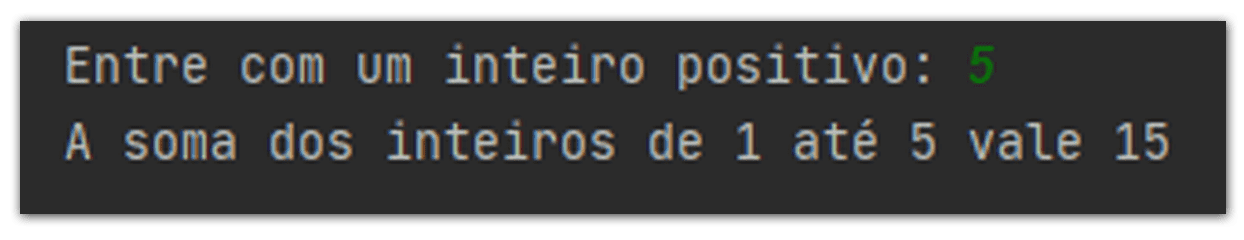 As três variáveis – termo, soma e contador – começam com valor 1, já contabilizando o primeiro termo da progressão.