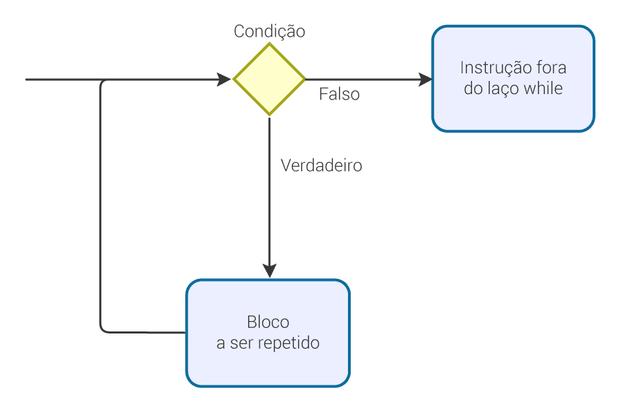 Em outras linguagens como C ou Java, existe outra estrutura muito semelhante ao while, chamada do-while. A diferença básica entre elas é o momento em que a condição é testada.