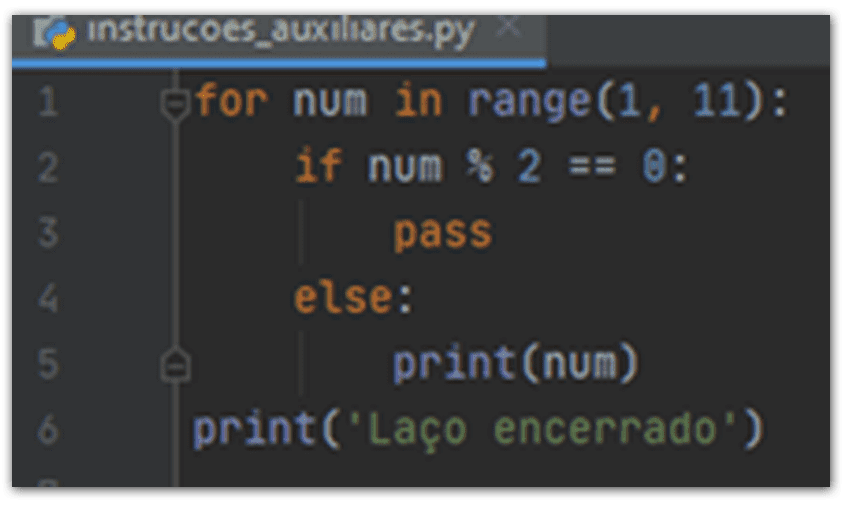 Claramente, seria possível reescrever a condição do if-else, para que pudéssemos transformá-la em um if simples, sem else. Porém, o objetivo aqui é mostrar o uso da instrução pass.