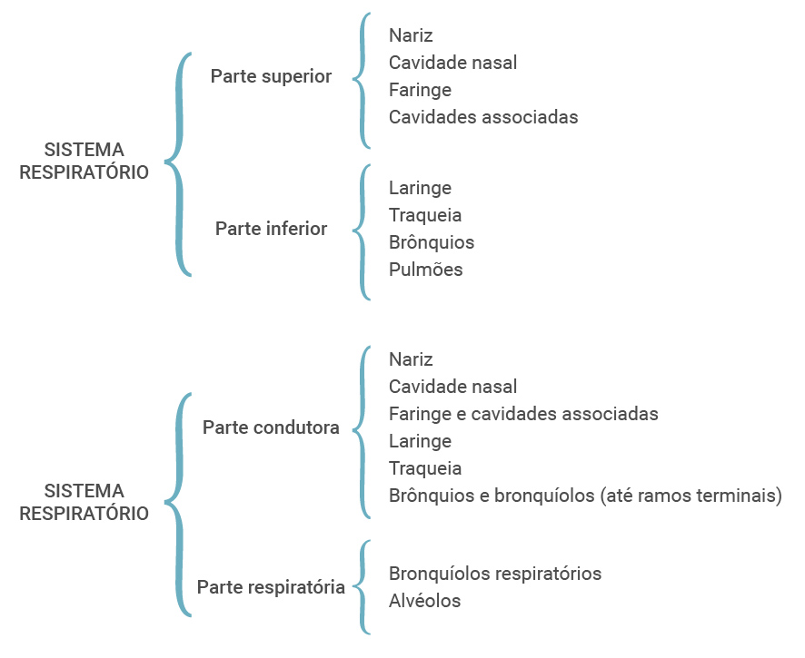 O esquema a seguir apresenta a estrutura do sistema respiratório: