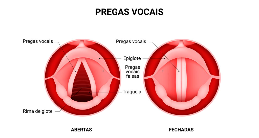 Para produção da voz, as pregas vocais se fecham e vibram na passagem do ar. Quando respiramos, elas se abrem para o ar entrar nos pulmões.