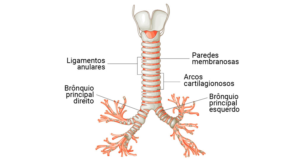 Esses anéis incompletos se abrem em sentido posterior e são completados por uma faixa de musculatura lisa, ou seja, de músculo involuntário (que não está sob o controle da nossa vontade). Os anéis de cartilagem são importantes para manter a passagem do ar aberta durante os movimentos da respiração. Existem entre 16 a 20 anéis cartilaginosos.