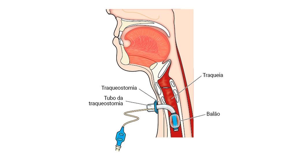 Por meio do procedimento chamado traqueostomia, é feita uma abertura cirúrgica na traqueia e colocado um tubo para facilitar a entrada de ar ou diminuir o trajeto do ar até os pulmões. Esse procedimento é realizado especialmente em pacientes em centros de terapia intensiva, que utilizam ventiladores mecânicos (respiradores) por longo tempo (ver figura).