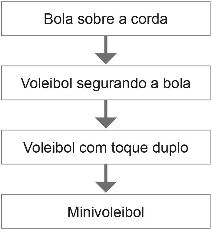 Imagine que o professor estabeleceu como objetivo de aula que o aluno deverá ser capaz de reconhecer a qualidade “precisão” no saque do voleibol. A partir daí, o professor determina a seguinte sequência de perguntas a serem feitas ao aluno: