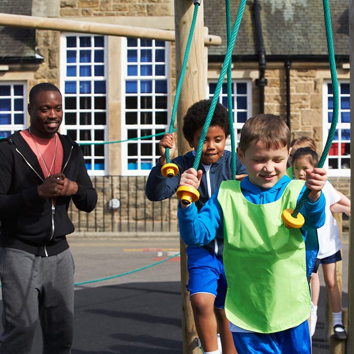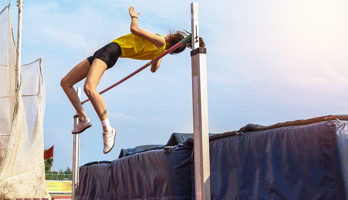 Em uma aula de salto em altura no atletismo, o professor organiza o espaço com quatro opções de altura e o aluno decide pela altura que vai iniciar a aula. Após um tempo suficiente de experimentações, o professor solicita que os alunos avaliem o próprio desempenho e os estimula a mudarem de nível.