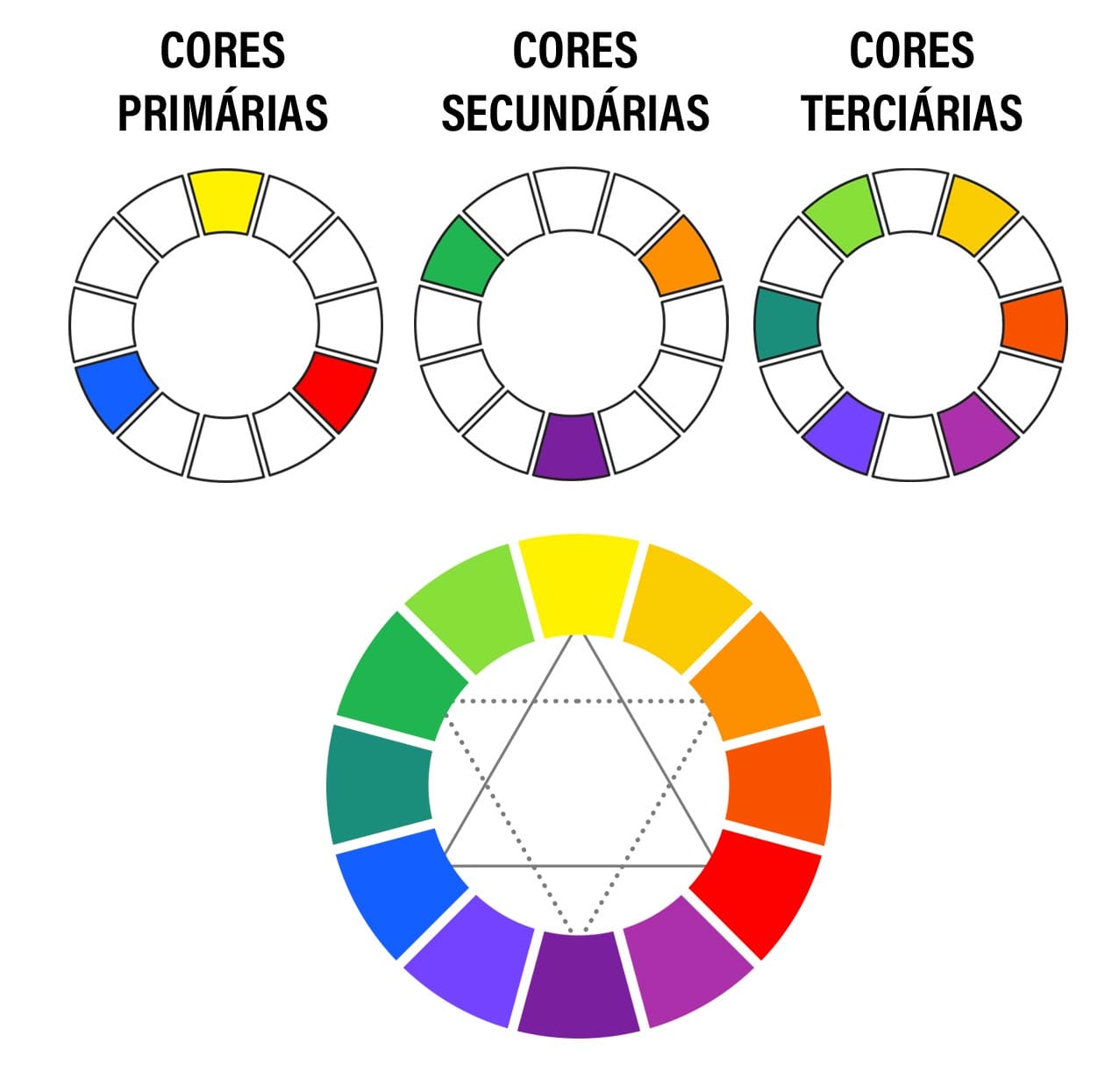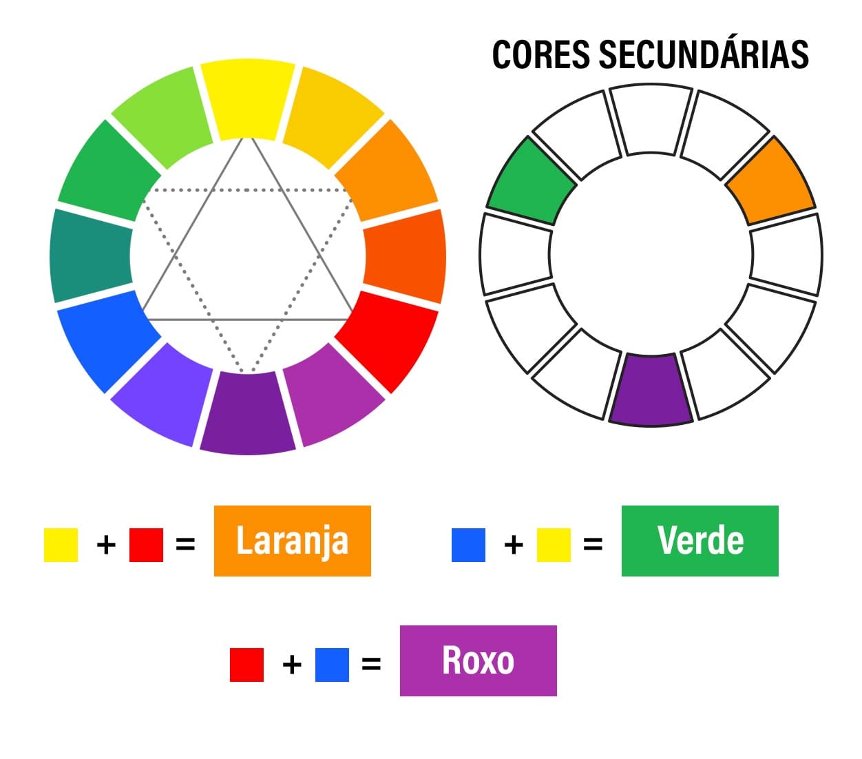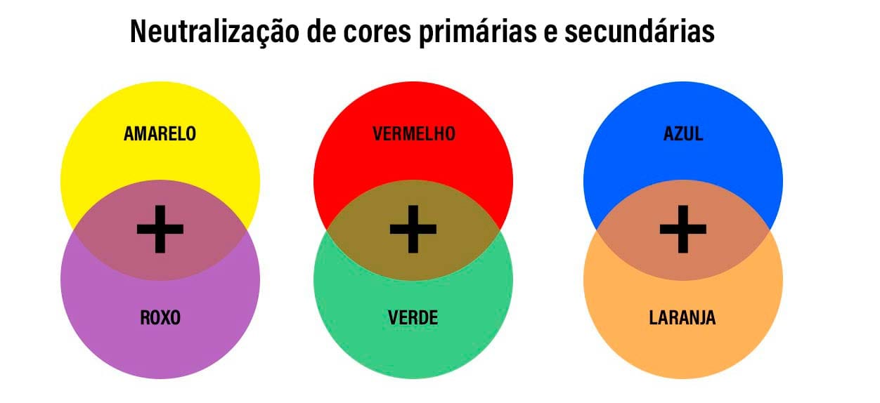 Esse processo segue a mesma lógica de neutralização entre as cores primárias e secundárias. Observe a figura adiante: