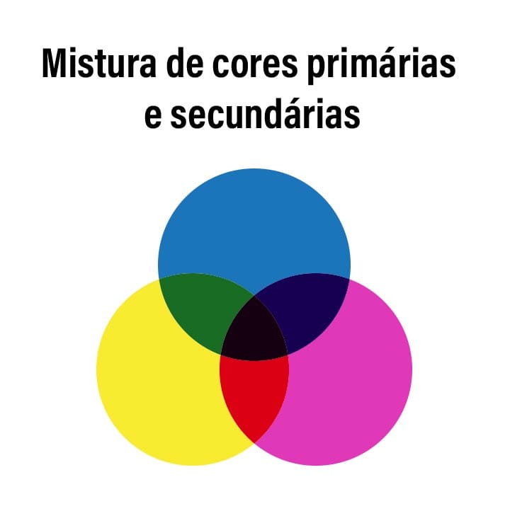Para comprovarmos isso na prática, aplicaremos o mesmo método utilizado na mistura das primárias. Desse modo, misture as cores conforme descreve a figura a seguir: