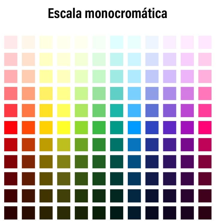 A escala monocromática refere-se às variações de tonalidades de determinada cor que, misturadas ao preto, tendem a ficar mais escuras. Esse fenômeno é chamado de escala de valor: trata-se da forma subtrativa da intensidade de cor.