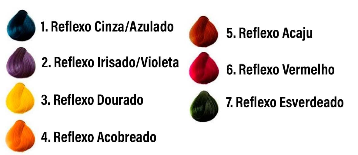 A indústria cosmética possibilita a criação de uma infinidade de cores fantasia a partir da inclusão de variados tons de nuances de reflexos. Dessa forma, ao se acrescentar, além do principal, um reflexo secundário, permite-se a criação de outra cor.
